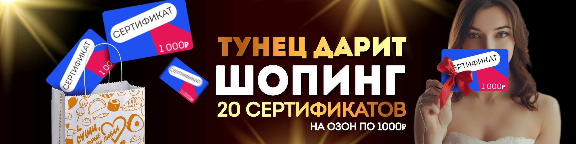 - Совершить единовременный заказ продукции суши-бара «Тунец» на сумму от 2000 (двух тысяч) рублей 00 копеек на официальном сайте